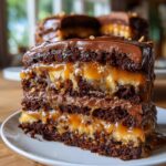 Once your cakes are completely cool (this is super important!), it’s time to assemble! Place one layer on a serving plate and spread a generous amount of caramel sauce right on top. Then, carefully place the second layer on top and finish it off with a luscious layer of chocolate frosting. I like to let some of that caramel drizzle down the sides for a beautiful, gooey effect. Enjoy the glorious creation you’ve just made!